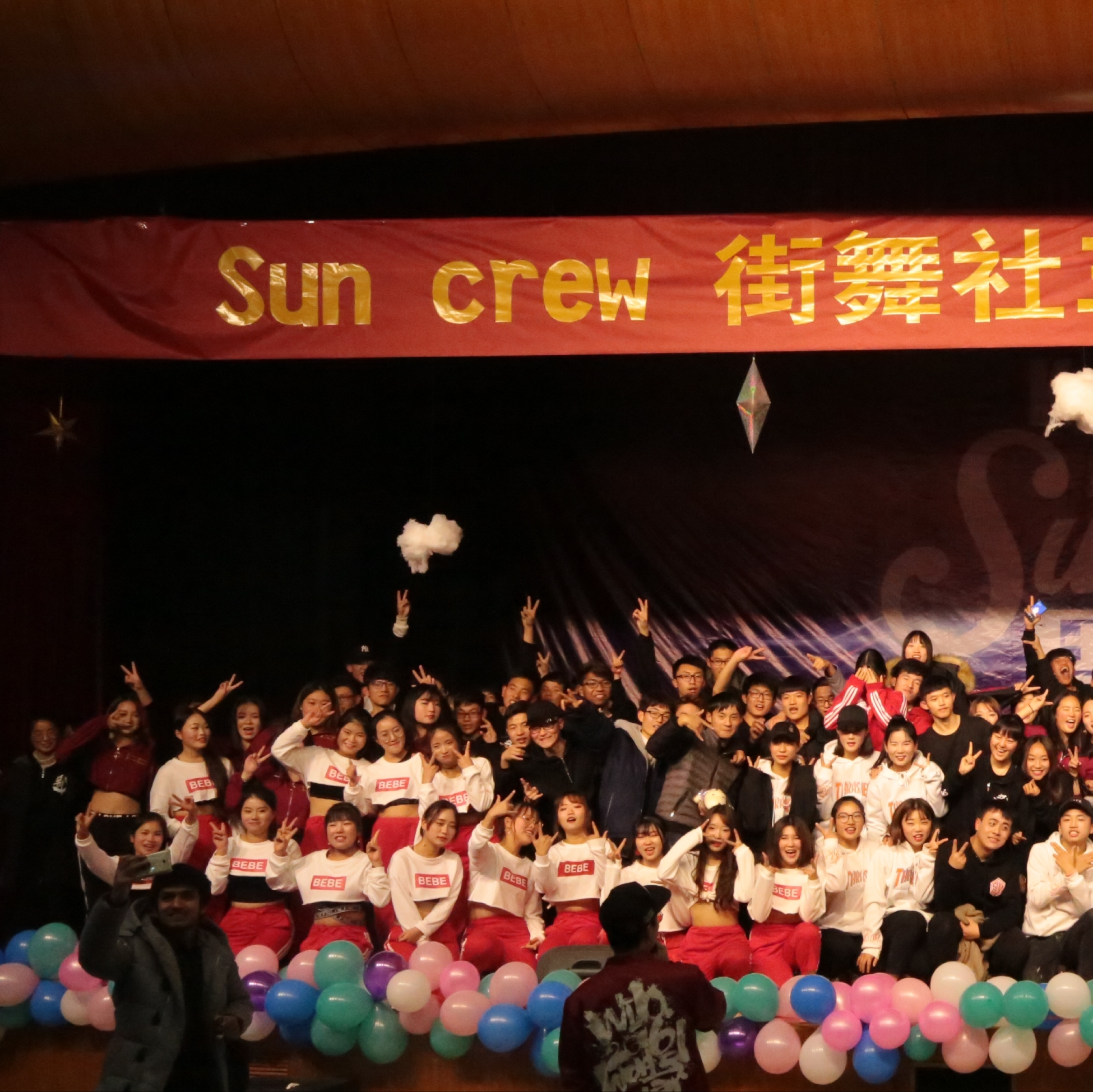 SUN CREW街舞社成立于2014年,社团以“and love dance dance”为宗旨,既与热爱舞蹈的人共舞。我们社团对于学校文体类活动的开展有着重要作用,积极参与学校活动,学校各个晚会都有我们的身影。我们也积极与校外专业舞蹈室合作增强对于街舞的了解和技能提升,社团成员积极参加街舞比赛,曾获得星耀杯高校齐舞比赛最佳编排奖 WDGPoppin单项8强等。 社团每个学年上学期举办周年庆活动为我们社团的品牌活动目的是展示社团风采 锻炼社团成员能力 宣传社团文化。下学期为自由举办活动如社团内考核,快闪以及小规模的比赛等社团活动丰富,并且我们积极参加别的活动,在校内受到了不少的欢迎。