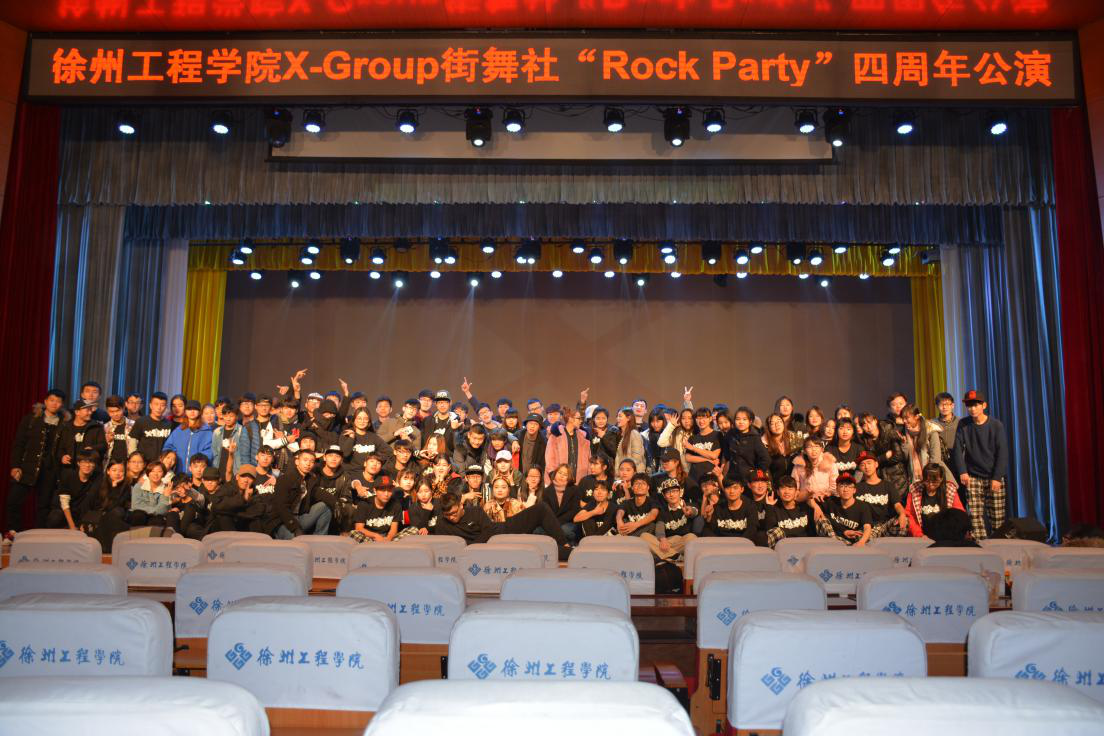 徐州工程学院X-Group街舞社创办于2013年,今年是舞社成立的第五年,由之前的TBS和FUN两个舞社合并而成。自社团成立以来,通过每一届社团成员不懈努力,我们日复一日的训练,不断成长,不断完善,街舞社可以算作全校社团中最活跃的社团之一了。