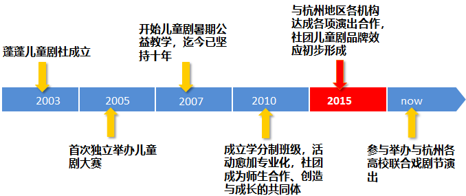 蓬蓬儿童话剧社成立于2003年,本着“为孩子们奉献最优秀的儿童剧”的宗旨,通过15年的传薪接力与砥砺耕耘,已打造成为浙师学子融汇语言、音乐、舞蹈、美术等多学科素养的专业平台与社会服务平台。