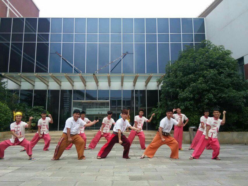 7、傣拳教学: 傣拳教学也是我们协会的教学之一,解放前,招收徒弟要举行正规人门仪式,设香坛,供天地祖师,拜师父。学徒每人凑几箩稻谷作拳师酬金,此外轮流给拳师供食,先学基本功的要领,再学击拳套路。最后,拳师指明人体部位,进退的步法为三点式,招法则前后左右逢缘,它以指、掌、拳、肘、脚掌、脚跟、膝变换挡、击,招式独具民族特点,俗称“傣族拳”