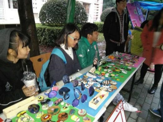 一. 社团简介 生活中的一花一石都是最美的艺术,当画邂逅了石头,当灵感遇上了创作,石头画便诞生了。武汉纺织大学石头画协会自2013年成立至今,始终坚持“用你神奇的双手把生活中的平凡勾勒成一个个不平凡的梦中之石”的创办理念,旨在为喜爱绘画和艺术设计的同学提供一片自由自在任其幻想的天地。协会很重视日常的绘画练习,坚持石头画的教学并加强交流,积极收取各种新点子,每一次尝试都是新的进步。同时,我们也在不断创新作品的种类,不仅局限于石头作画,还在木片、树叶、玻璃瓶、风筝、鞋子等物品上作画,发挥 “化万物为灵秀”的创新和创造力。 协会在这几年里通过自身的努力,开辟了创意新奇的绘画方式,赢得了广泛的关注和喜爱,同时也在积极参与关爱儿童等志愿活动以及校园义捐义卖的公益活动,传递正能量。