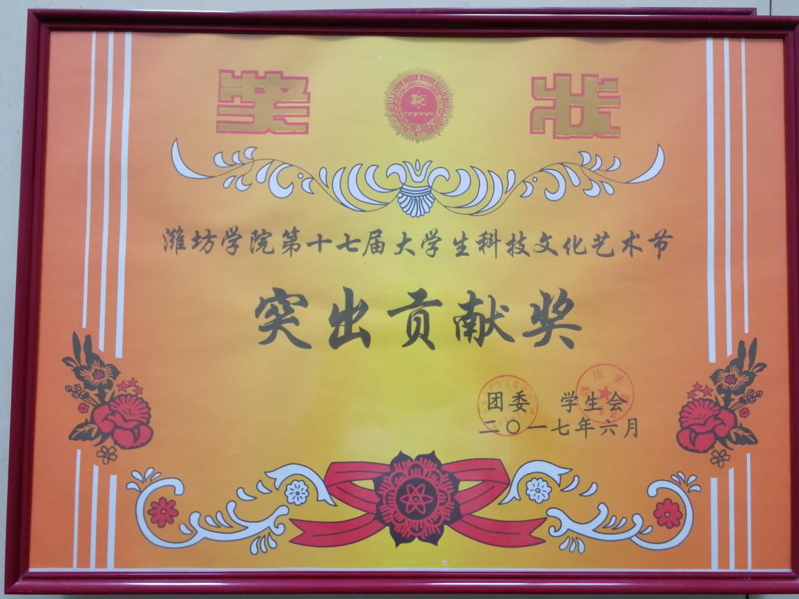 4、第十七届大学生科技文化艺术节中荣获“突出贡献奖”。