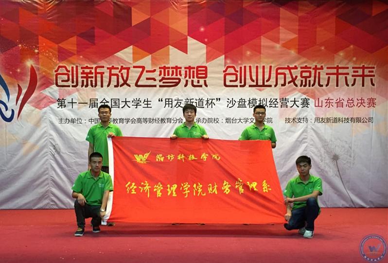 2015年,在第十一届全国大学生 “用友新道杯”沙盘模拟经营大赛山东省总决赛中,获本科高校组一等奖、高职组二等奖。