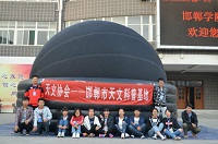 邯郸学院天文爱好者协会成立于2002 年,天文爱好者协会组织机构严密,分协作合理,经过多年发展,天文协会每周一至周四晚七点到九点期间。面向社会公众开放,定时开展天文科普、观测活动;定期的会接待本校师生,及社会人士。每年科技活动周、科技日期间,精心准备天文讲座、天象观测等科普活动项目;为广大天文爱好者举办天文知识科酱讲座或天文主题电影放映。邯郸学院天文爱好者协会以“普及天文知识,提高公民科学素养”为宗旨。举办天文知识竞赛,科普天文知识;以及举办天文爱好者协会十五周年庆大型舞会;路边天文台,移动天文馆展出,接待参观,所有活动免费向社会公众开放,受到社会公众一致好评。充分发挥了邯郸市科普宣传前沿阵地作用。自建立之初。协会已连续多年在邯郸市各级中学进行天文科普宣传及相关学术讲座,每年的春天来临之际,天文爱好者协会会下市中学为初中生,高中生科普天文知识。