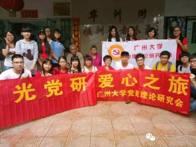 广州大学党建理论研究会(党研会)成立于2002年,至今踏入第16年,已连续获八次校十佳社团称号、校五星级社团称号。党研会的宗旨是推动学生党员进行党建实际工作,提高广大同学党性觉悟和理论水平,引导广大学生关心党建工作和时事政治。秉着“创阳光党研会,造党务时事平台”的理念,党研会致力于改变学生枯燥乏味的党印象,服务于党务时事工作,并通过一系列党建实践活动,为学生搭建一个学习党,靠近党,与优秀党员交流的平台。
