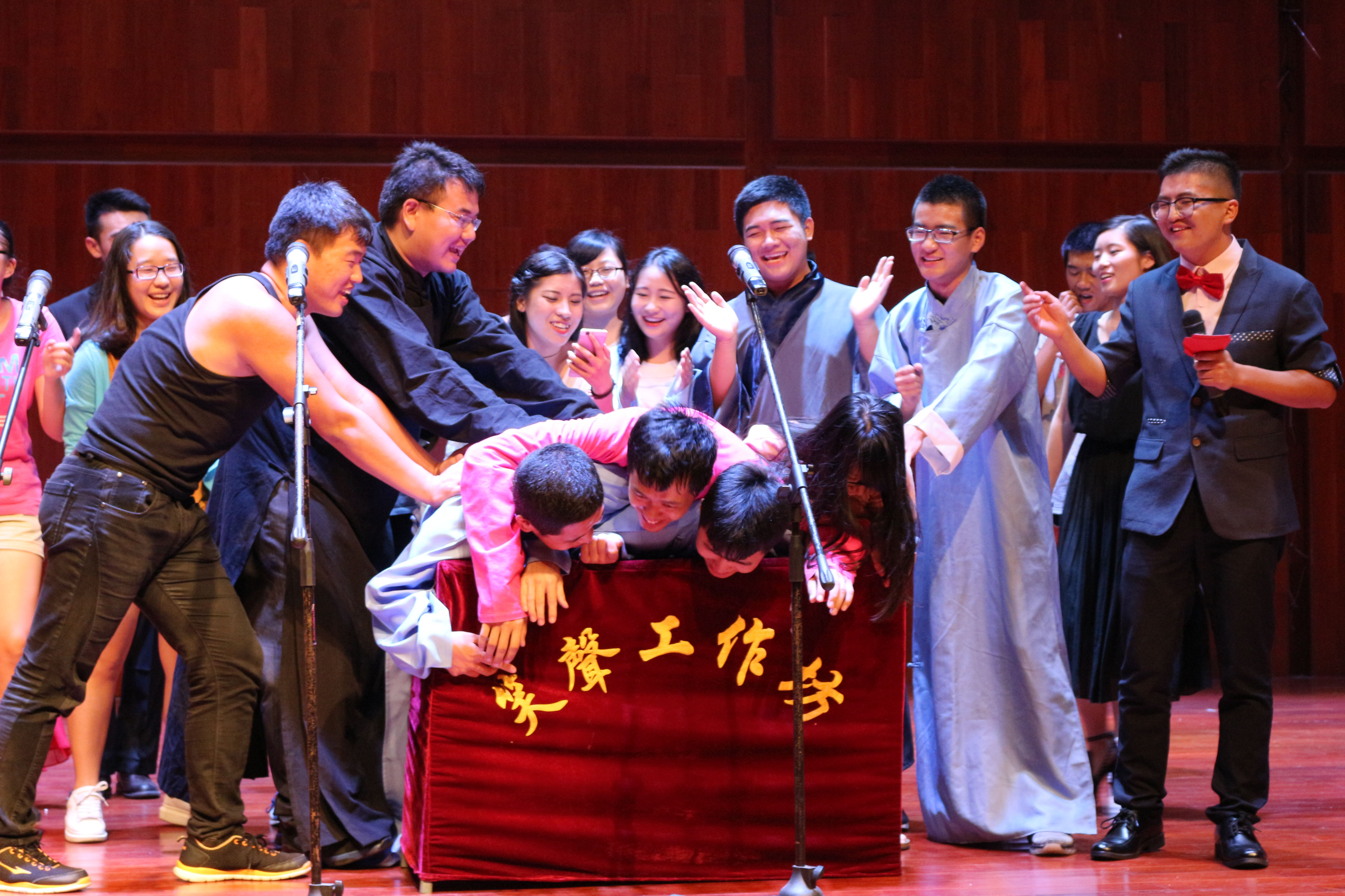 随着不断地演出,舞台经验日趋成熟,,迄今为止,社团已经发展成为200多人、骨干演员30余人的大团体,同时海大也树立起了我们的金字招牌“笑声工作坊,不许不鼓掌”。