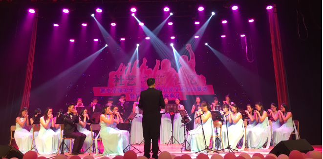 今年刚好是成立28周年,1990年,丽水卫校口琴协会成立,它是丽水学院口琴协会前身。围绕着建团目标:交流表演,教学研究、示范培训、人才培养。我们乐团开展了一系列的活动,充分展示了乐团的生机和活力,如:1.基地校建设:我校与中国口琴协会合作共建的“全国口琴教育培训基地学校”建设也一步步扎实推进。2.口琴进社区:经过半年的组织指导,丽水主城区四个街道每个街道都组建一个口琴乐团。3.口琴教学:学校通识课开了两个口琴班。支持老年大学两个口琴班。4.口琴考级。5.交流表演:参与了许多校内的文艺表演,校外专业的舞台表演,还有进社区的表演。在学生处团委党支部党员赴革命老区学习时,红军学堂里清脆悦耳的口琴伴奏伴随着红歌的演唱在红军学堂里回响。不止如此我们乐团举办了好几届口琴艺术沙龙,使口琴爱好者们共同进步。