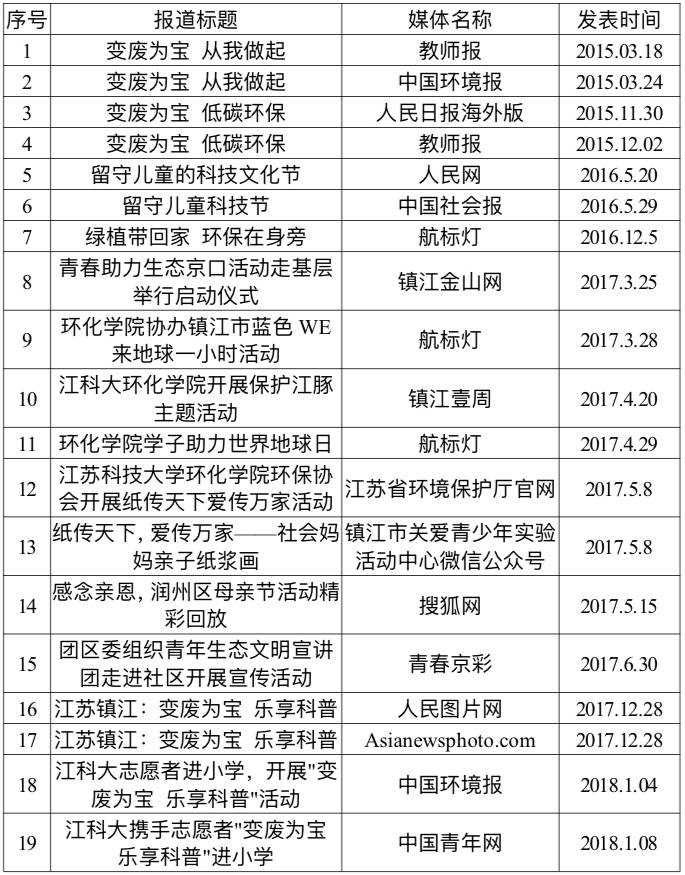 环保协会成立于2002年,是江苏科技大学五星级社团之一,协会立足学院环保特色,围绕党的十八大提出的“建立生态文明制度体系,加强生态环境保护”的精神,结合实际,开展了绿植领养、千人植树等植绿护绿活动;变废为宝、低碳出行等生态环保活动。协会还与地方政府部门合作,多次深入社区进行环保宣传工作。同时,协会根据专业特点,开展污染监测以及环保产品的科研活动,有多名协会成员以本创计划为平台,参加了全国节能减排大赛、挑战杯全国科技作品竞赛等众多赛事,并取得优异名次。2017年,协会开展了“留住江豚的微笑”等十余次护豚活动,并与南京、扬州豚保协会、镇江市农委豚保中心、中科院水生生物研究所等机构深入探讨了如何保护江豚,并进行了广泛的宣传。通过这些活动,不仅提高了公众的生态文明意识,而且带动他们积极投身到生态环保的实践中去。