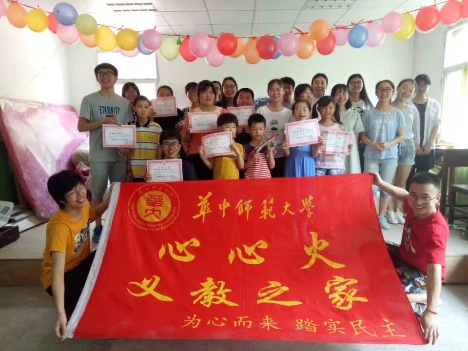心心火义教之家是一个主要由国家免费师范生组成的旨在为农民工子女提供义务支教的公益类学生社团,社团成立于2007年3月,宗旨为“关爱农民工子弟,提高师范生技能”,目前的组织结构由活动委员会、组织委员会和监督委员会三大委员会组成,常规活动由义教部、辅导部、雏鹰班和430课堂部四个部门承担,负责进入学校和社区帮助农民工子弟学习,除此之外,社团还针对于武汉市流动儿童和周边农村地区留守儿童的开展暑期社会实践。