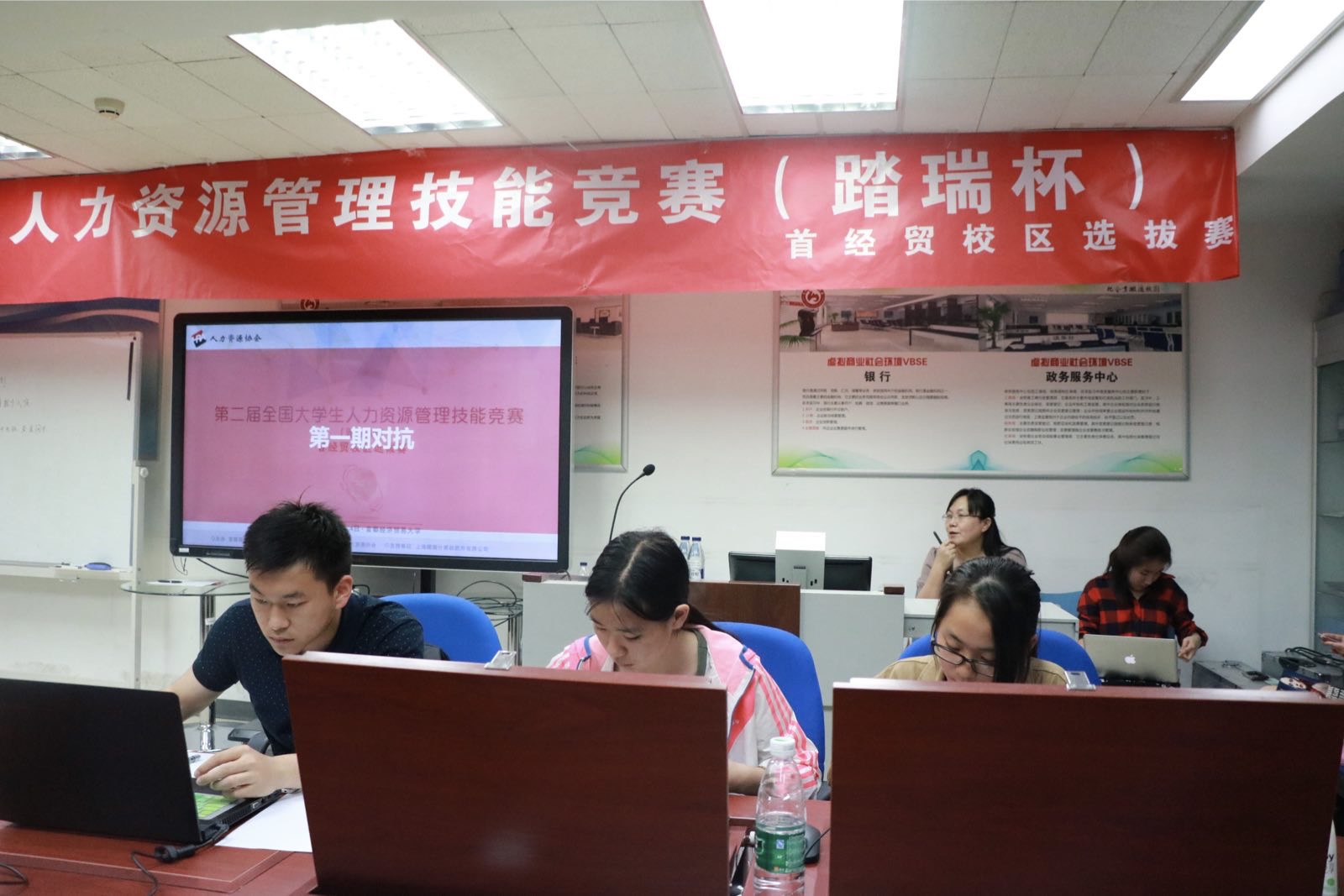 人力资源管理知识技能大赛:为促进创新人才成长、推动经管类的实践教学改革、搭建全国各高校专业交流平台,劳动经济学院承办,人力资源协会协办了第三届全国大学生人力资源管理知识技能竞赛。比赛分为模拟沙盘实战对抗和现场答辩两大模块,模拟沙盘实战对抗通过模拟企业人力资源管理的整体运营过程,考验选手在分析企业外部市场竞争环境、人才供需状况以及内部人力资源优势与劣势的基础上,确定企业人力资源招聘与甄选、培训与开发等各个方面战略内容的能力。答辩展示则是以小组为单位向评委展示自己在沙盘模拟经营时遇到的问题和心得体会,并接受评委提问,考验选手们的综合素质。