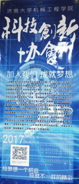 济南大学机械科技创新协会成立于2001年10月,是一个致力于科技创新知识普及与传播、科技作品制作、信息技术开发与创新的科技创新爱好者组织。科技创新协会根据学院“鼓励学生科技创新、丰富学生第二课堂”的精神,大力倡导同学们参加由相应的专家教授指导的科研活动及国内著名科技创新类赛事。以机械学院十四个创新导师工作室作为实践阵地,以各项科创赛事作为实践载体,累计培养了3000余位会员参赛作品达千于件,累计获得国奖三十余项,省奖400余项。成员申请专利百余项,发表论文十余篇,是济南大学参与科创赛事的先锋军,多次代表济南大学参加科创赛事,取得优异成绩。是济南大学首批五星级社团,连续多年被评为"济南大学十佳社团”“山东省优秀大学生科技社团”