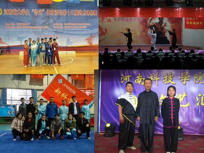 荣誉:代表新科学院连续两届参与河南科技学院大学生武术比赛,均获得团体一等奖以及个人奖项若干。参与河南省大学生“华光”体育活动第十三届武术锦标赛,获得取得了一金三银一铜、女子团体第三名。