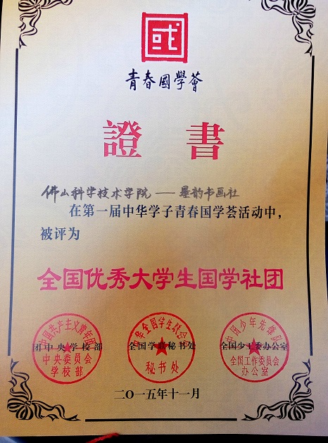 2015年6月获得佛山科学技术学院“最有新意社团”称号