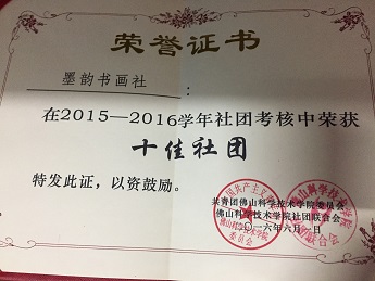 2016年6月获得佛山科学技术学院“十佳社团”称号