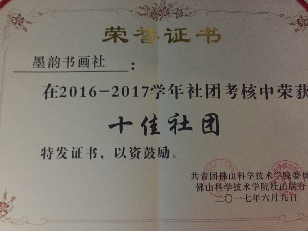 2017年6月获得佛山科学技术学院“十佳社团”称号