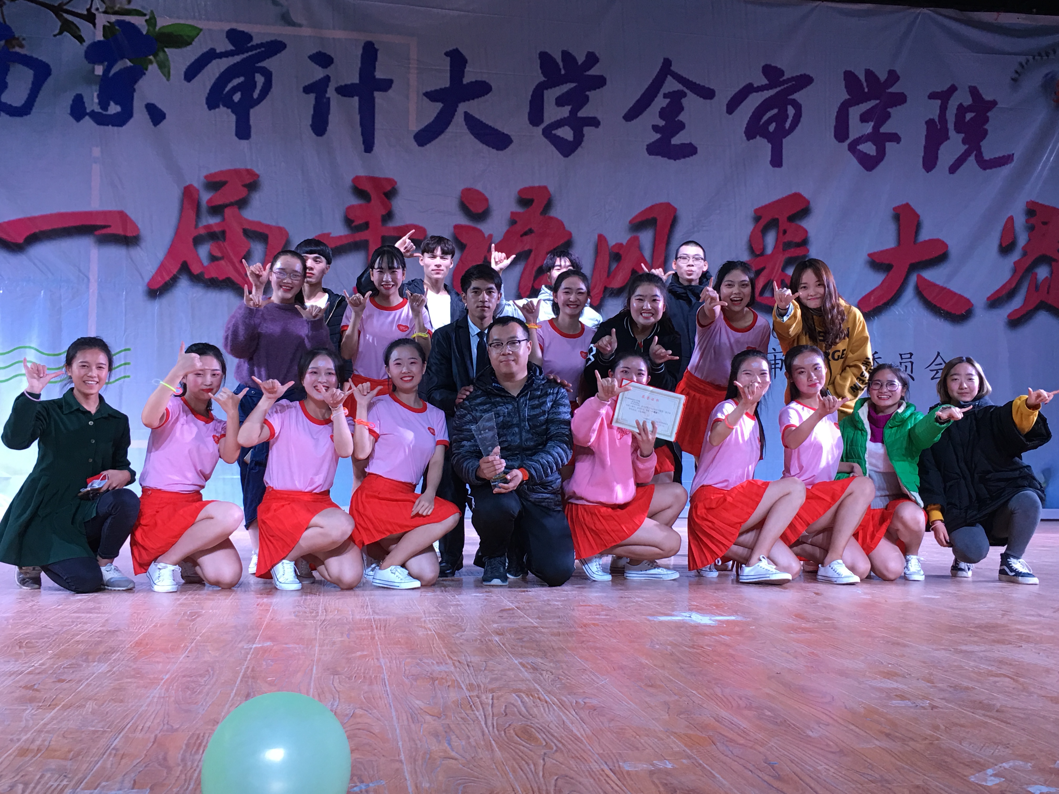 心声之语社团自2017年9月成立以来,不到3个月时间,就在南京审计大学金审学院举办的第一届手语风采大赛中,经过与其余十几所高校紧张而又激烈的较量,最终取得了第一名的好成绩。此喜讯在南京市高校手语联盟的微信公众号进行推送报道,链接如下: http://mp.weixin.qq.com/s/cPVFaIYdnh-4u5YpMEtp4w
