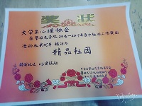 2012-2013年度社团活动及工作中表现优秀被评为优秀社团