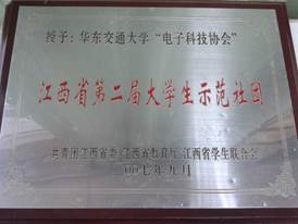 2007-2008学年:获得“江西省第二届大学生示范社团”,“双基”竞赛优秀组织奖;