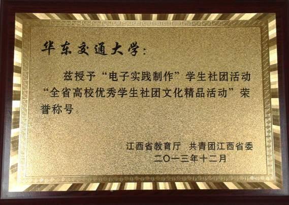 2013-2014学年:获得“江西省五四红旗团支部”,“全省高校优秀学生社团文化精品活动”,在第四届科技江湖中被评为“优秀组织奖”;