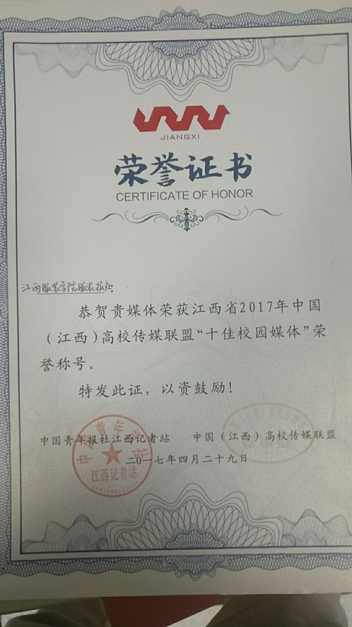 2017年在中国高校(江西)传媒联盟校园十佳媒体评选中荣获“江西省十佳校园媒体”;