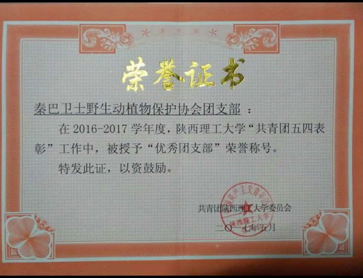 协会获得陕西理工大学2016年四星级优秀社团,并在2017年被评为五星级标兵社团,授予“优秀团支部”荣誉称号。