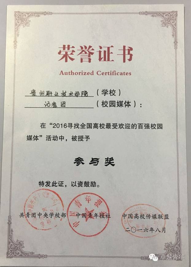 2.获2016寻找全国高校最受欢迎的百强校园媒体参与奖