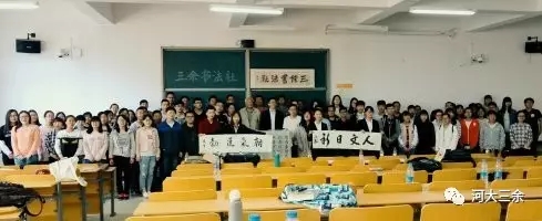三余书法社成立于1978年,社名称取自《三国志•魏书》的“冬者,岁之余;夜者,日之余;阴雨者,时之余。” 意在提醒大家利用好空闲时间,坚持练字,有始有终的在书法的道路上前行。 经历了四十个春秋,三余书法社从当时的单一教学到现在开设颜体多宝塔组、颜体勤礼组、欧体组、赵体组、柳体组、隶书组、篆刻组和硬笔组,内设组织部、财务部、宣传部、办公室、公关部和临池班的成熟社团。社团成立之初,欧阳中石、李尔重先生为我社题词。近年来,三余书法社经常组织大型书法展览,笔会等活动,为广大学生以及社会各界普及书法知识做出了贡献。 我社在河大的社团中独树一帜,不仅在于灿烂悠久的历史,健全的内部机制,各部门分工明确,固定的例会制度,正规完善的内部管理体制,奖惩制度,高水平的书法顾问,丰富多样的活动形式,而且在于真正的体现了一代代三余人恪守的宗旨:弘扬民族文化,发扬临池精神,练就一技之长,觅心灵的一方净土。 并且每年举办内部联谊、元旦送福、新生杯书法比赛、社庆、书法展、与外国友人交流和莲池游玩等一系列富有特色且内涵丰富的活动,让广大三余成员不仅在学习书法的同时还能有诸如交友,旅游,锻炼自身能力的机会。