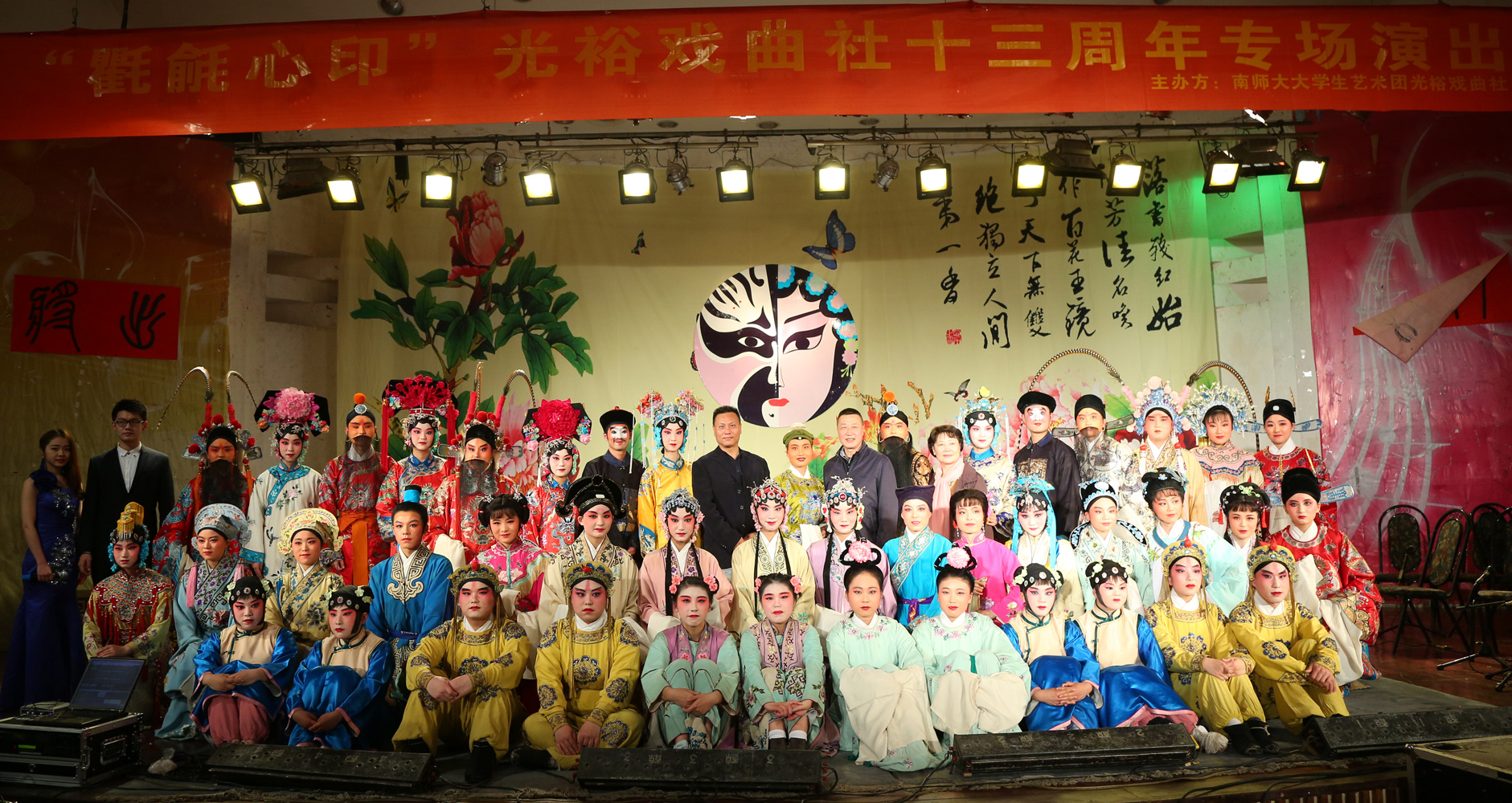 为保证社团活动的高质量,我社聘请了南京师范大学文学院博士生导师孙书磊教授,以及江苏省京剧院著名京剧表演艺术家钟荣,江苏省锡剧团著名锡剧表演艺术家、第十届中国戏剧梅花奖得主倪同芳,江苏省京剧院国家一级演员王新农,南京市京剧团国家一级演员喻慧霞,南京市越剧团国家一级演员赵时莺为我社的指导老师。