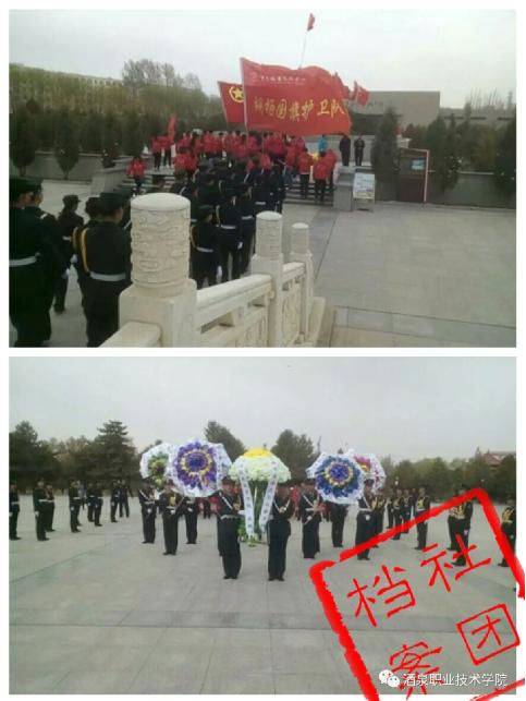 2016年4月2日,胡杨国旗护卫队全体队员随院团委委员、“青马工程”骨干精英班学员赴张掖市高台县中国工农红军西路军纪念馆开展“清明祭英烈,共铸中华魂”扫墓纪念活动,接受革命文化熏陶和爱国主义精神洗礼。