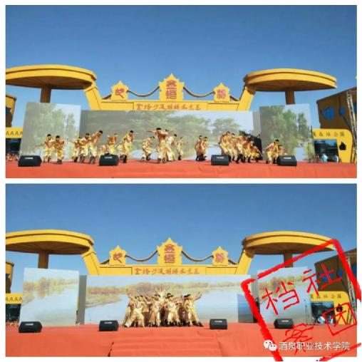 2017年9月28日,胡杨国旗护卫队应邀赴金塔县,参加“中国·酒泉航天金塔第八届胡杨文化旅游节”开幕式演出,以汗水和激情,展示了胡杨学子奋发进取的昂扬风貌,演绎了“扎根大漠,荫泽苍生”的胡杨精神。