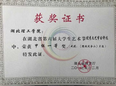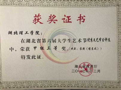 2017年荣获湖北省大学生艺术节戏剧组一等奖