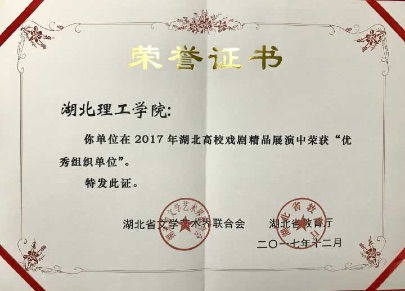 2017年荣获湖北省高校戏剧精品展演中获一等奖、优秀组织单位