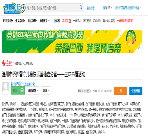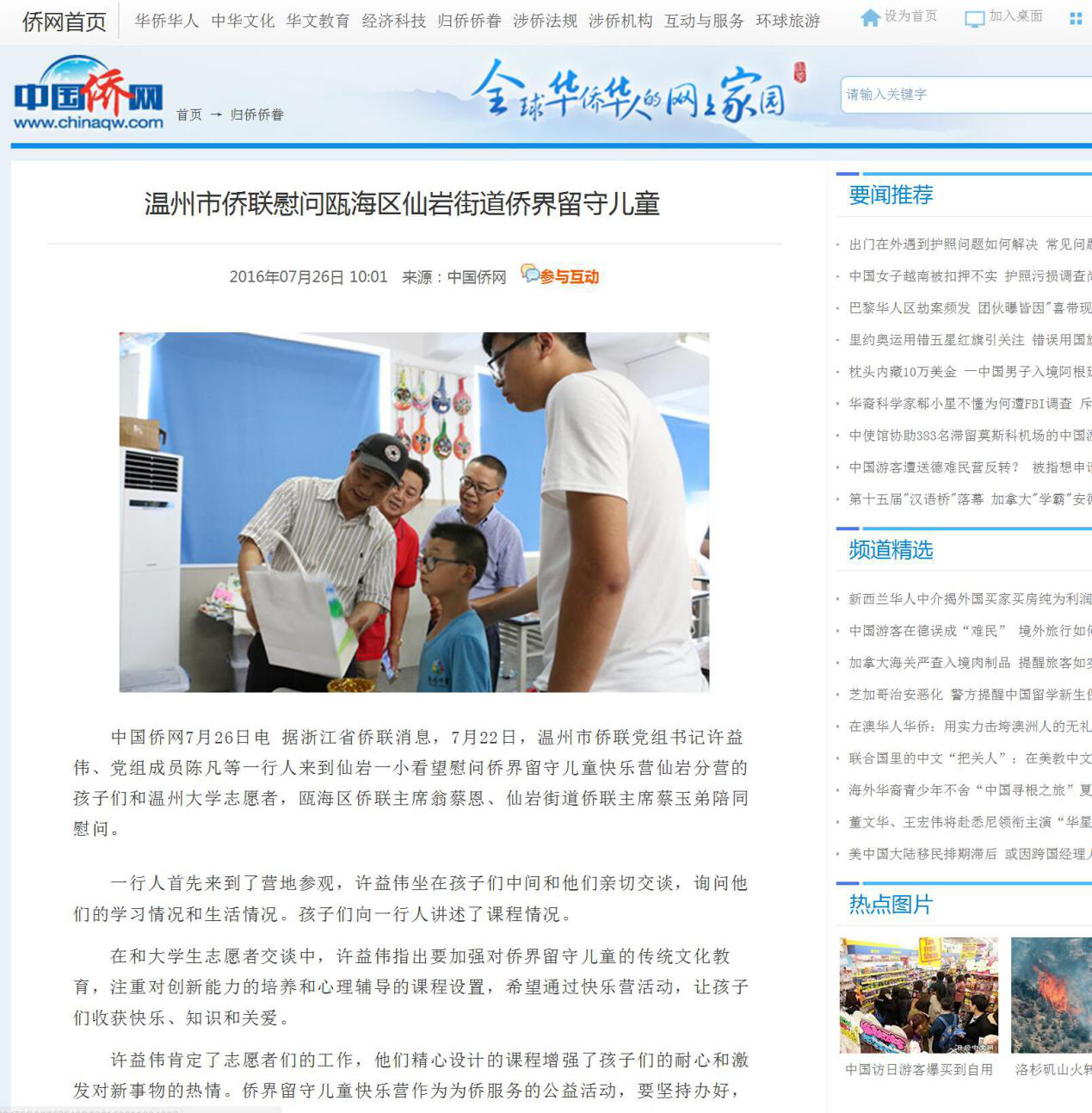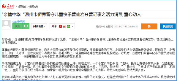 自2007年“亲情中华”温州市侨界留守儿童快乐营项目设立以来,快乐营活动获得了社会各界媒体的广泛关注。