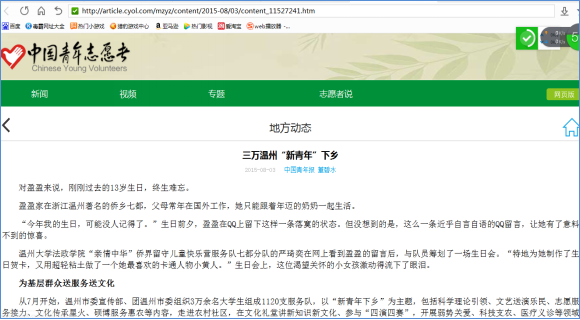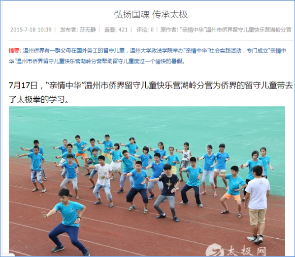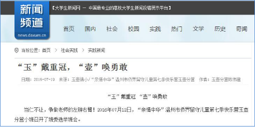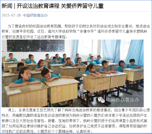 ★2015年,“亲情中华”温州市侨界留守儿童快乐营暑期社会实践队被评为全国百强暑期实践优秀实践队