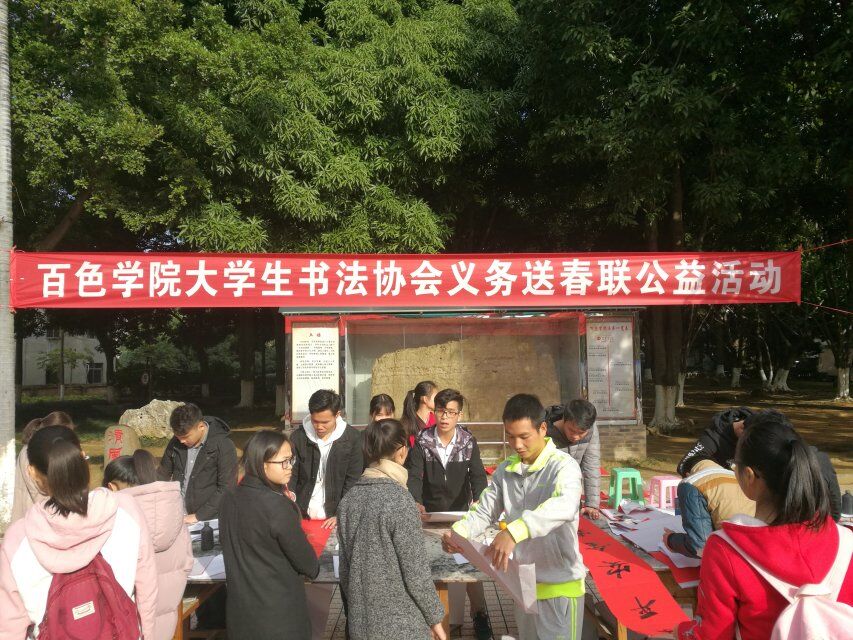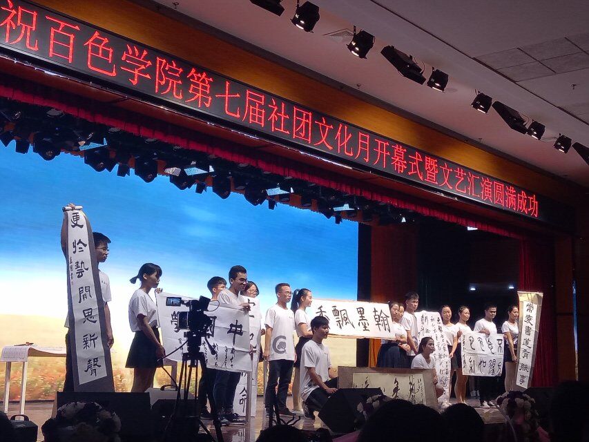 百色学院书法协会成立于1984年,在院团委的精心培育、细心浇灌下逐渐地发展壮大,不断创新、不断发展,直到今天呈现出百花齐放、蓬勃发展的良好局面。我协会历经33年风风雨雨的发展,如今已经成为学院五大社团之一。