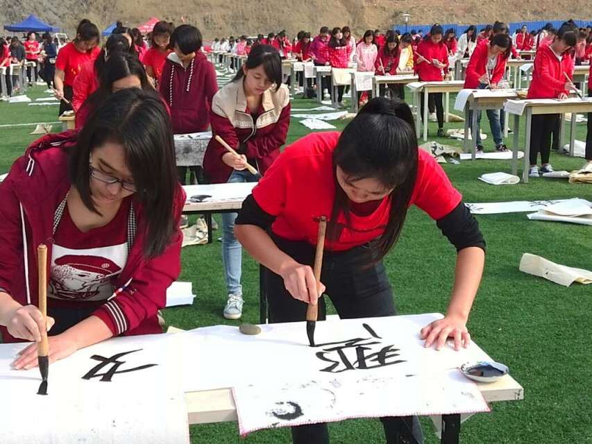 13协助百色学院书画院举办主题为“美丽乡愁 翰墨飘香”女子千人书法比赛