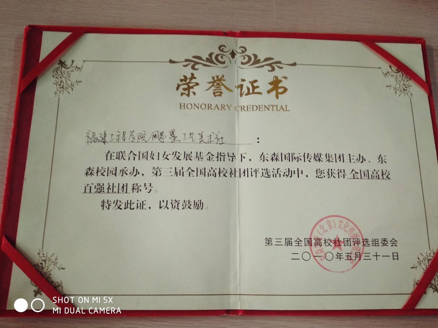 3、在2010年取得了“全国百强社团”的荣誉称号;