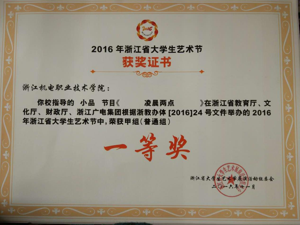 话剧《凌晨两点》获2016年浙江省大学生艺术节戏剧甲组一等奖