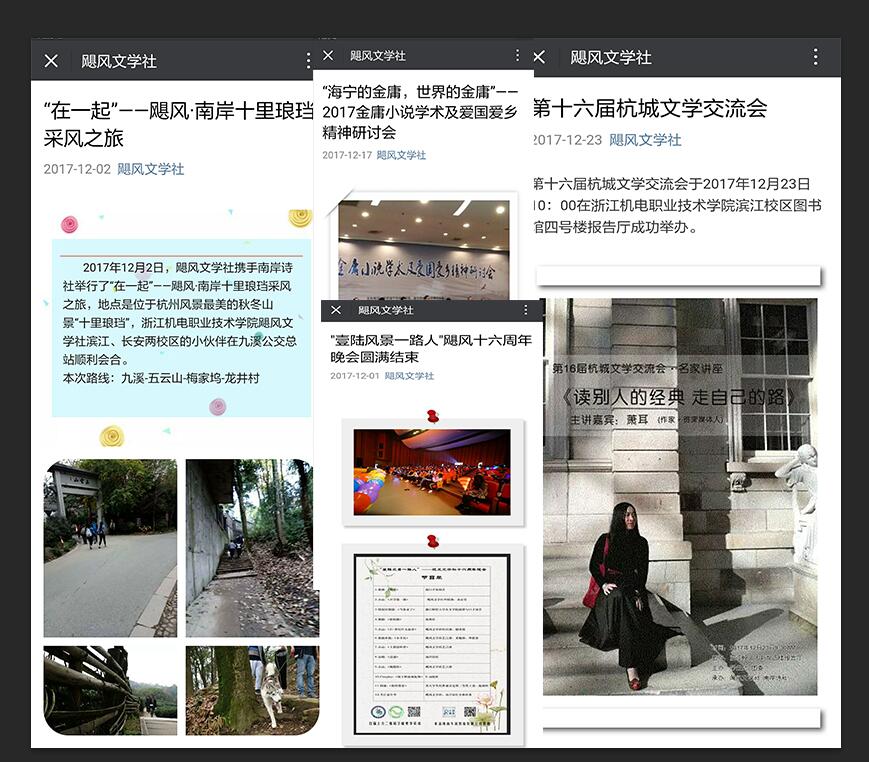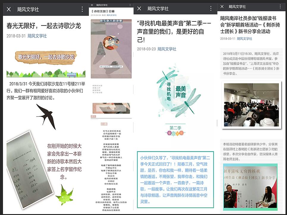 我们飓风文学社还拥有着自己的微信公众号,目前关注人数已达1069人,总点击次数近10余万次。