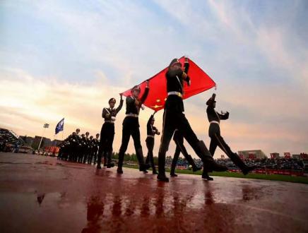 国旗护卫队每名成员都有坚定的思想政治认识,爱党爱国,努力训练,以弘扬爱国主义精神为己任,以护卫国旗尊严为使命,在荣誉和责任的道路上书写着飞扬的青春。